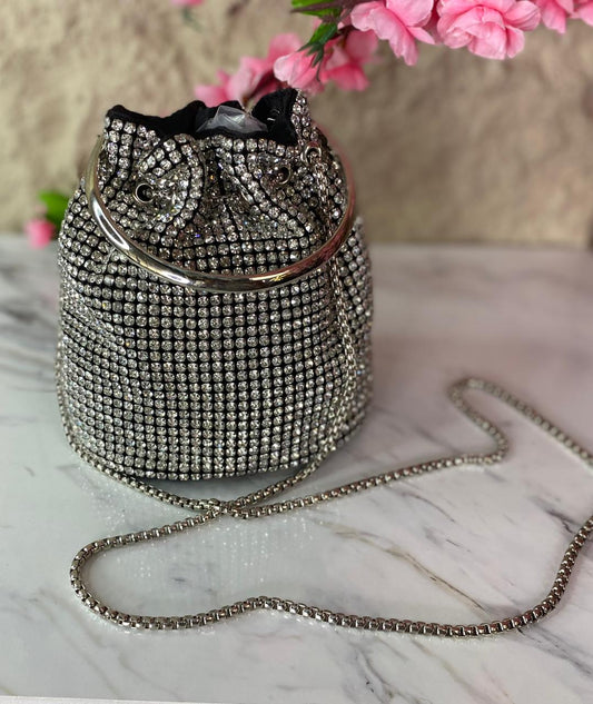 BOLSO CILINDRO CON ARO Y DIAMANTES
