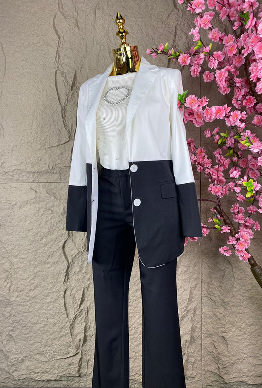 CONJUNTO PANTALON/SACO BICOLOR NEG/BCO