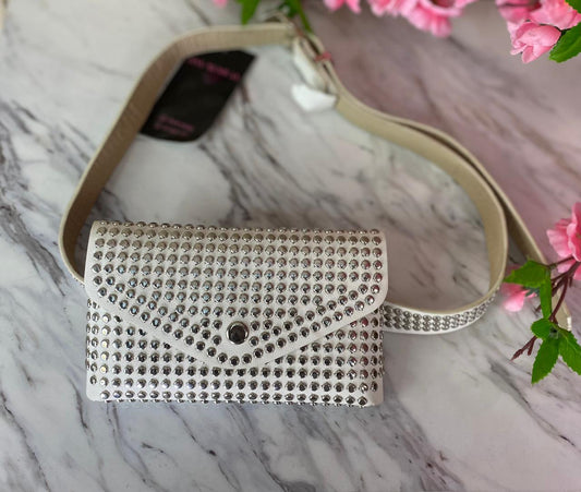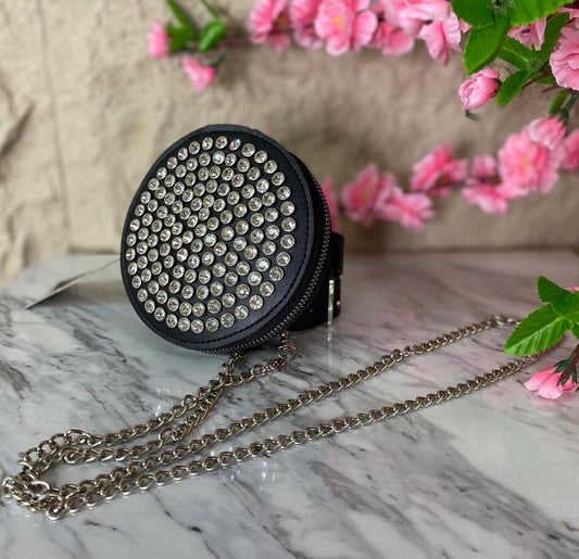 MINI BOLSO REDONDO CON DIAMANTES PLATEADOS