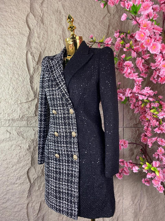VESTIDO FORMAL CRUZADO BICOLOR NEGRO/BLANCO
