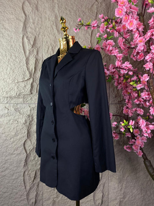 VESTIDO STRAPLESS CON APPS Y FLECOS AZUL