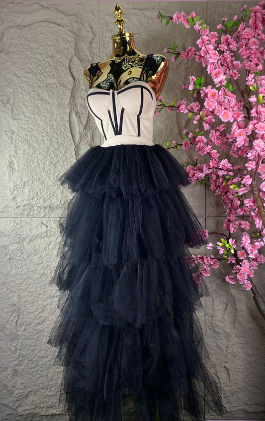 VESTIDO LARGO DE TUL NEGRO BEIGE