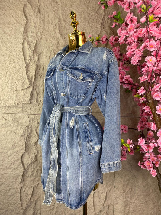 VESTIDO ML CON CINTURON MEZCLILLA AZUL
