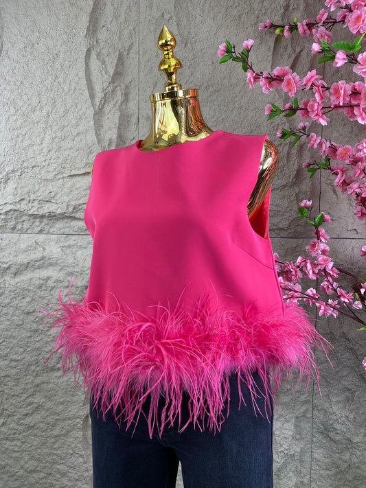 BLUSA SIN MANGAS CON PLUMAS COLORES