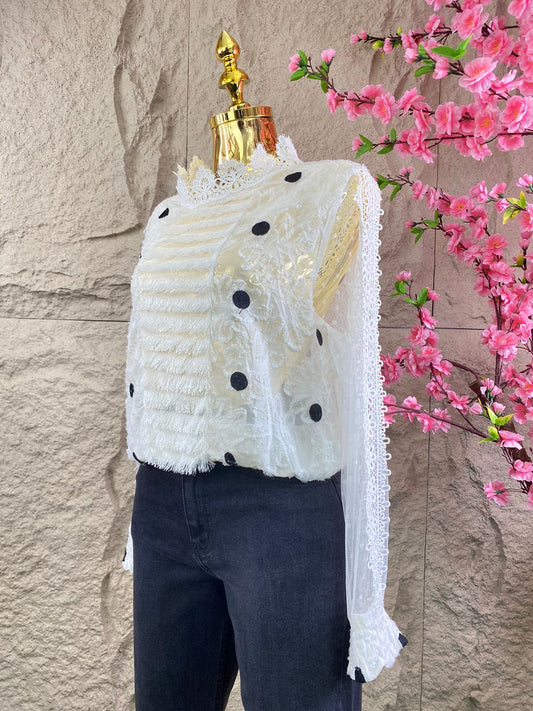 BLUSA ML ENCAJE CON LUNARES BLANCO
