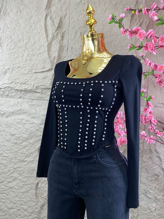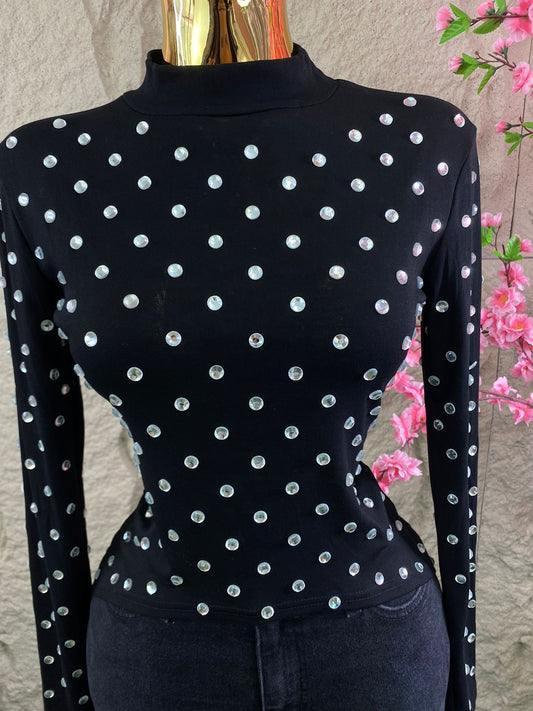 BLUSA ML PIEDRAS BRILLANTES NEGRA