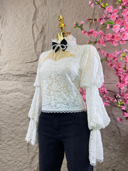 BLUSA ML ENCAJE BLANCO