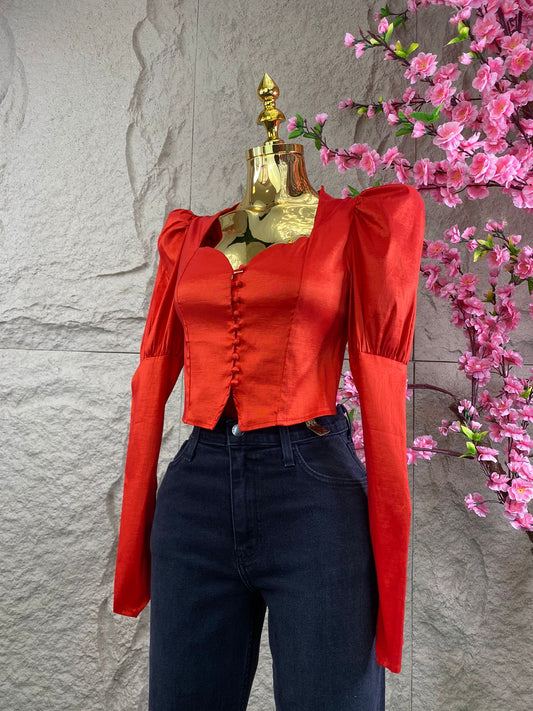BLUSA TOP ML RAZO CON BOTONES ROJO