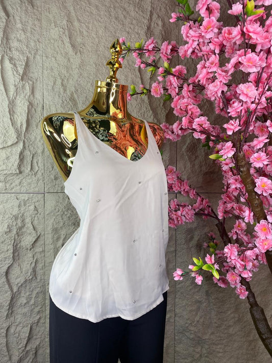 BLUSA SATINADA CON TIRANTES DE PERLAS