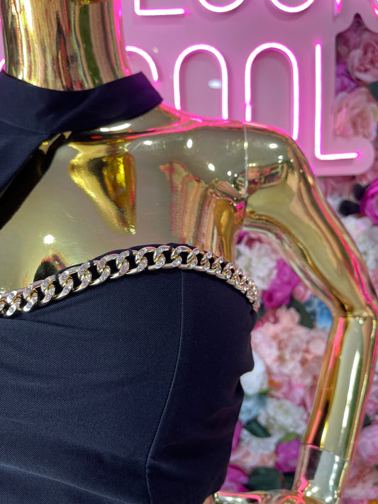 TOP UN HOMBRO CON CADENA NEGRO