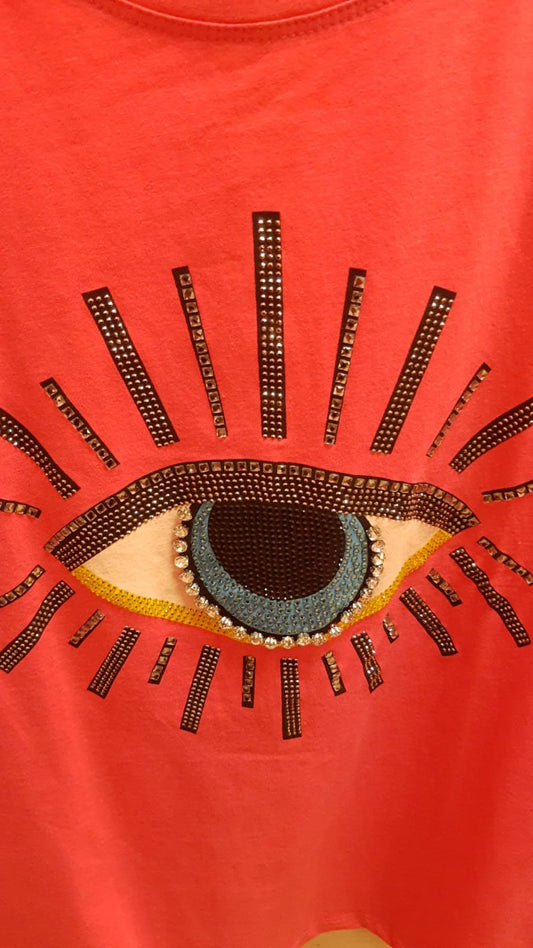 PLAYERA TEE CON BROQUELES Y BRILLOS ROSA