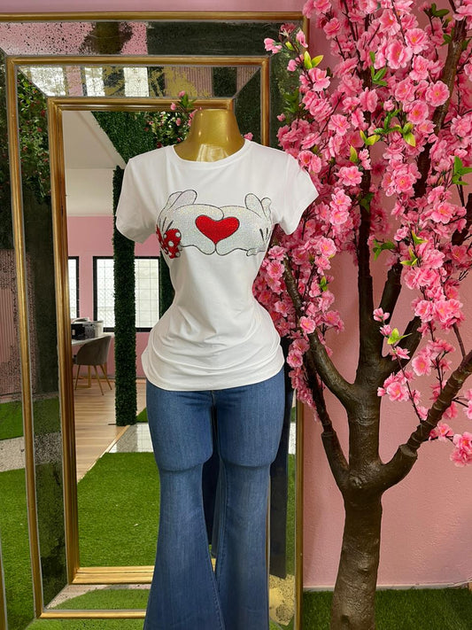Sold outPLAYERA TEE MANOS LOVE BRILLOS
