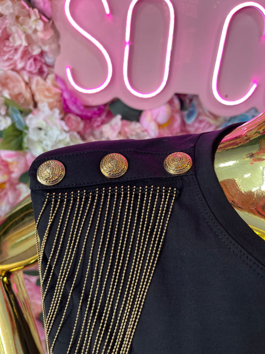 Sold outBLUSA FLECOS DORADOS NEGRA