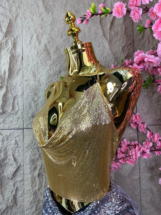 TOP DE SOBREPONER CORTO HALTER DORADO