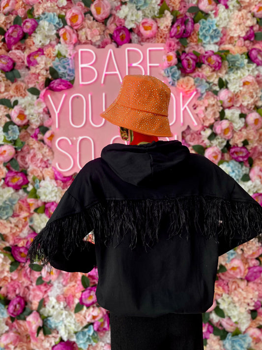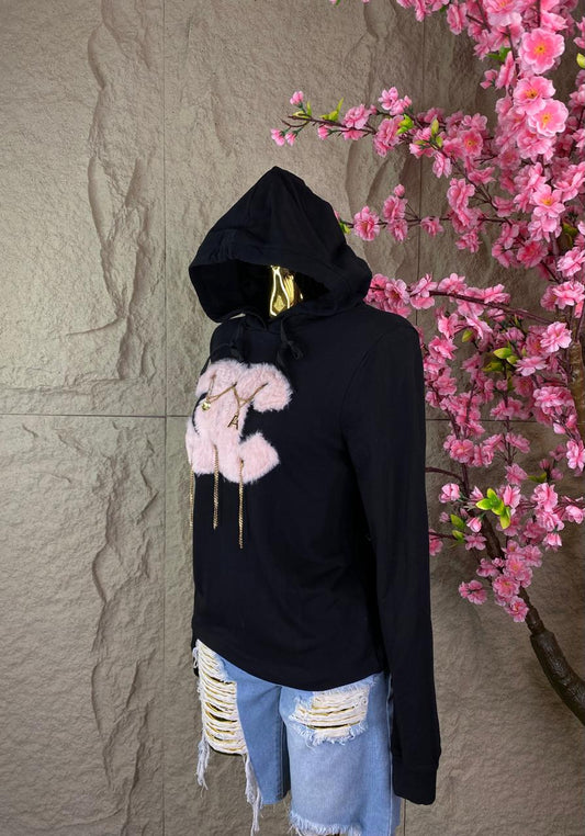 SUDADERA CON GORRO CONEJO PELUCHE NEGRO