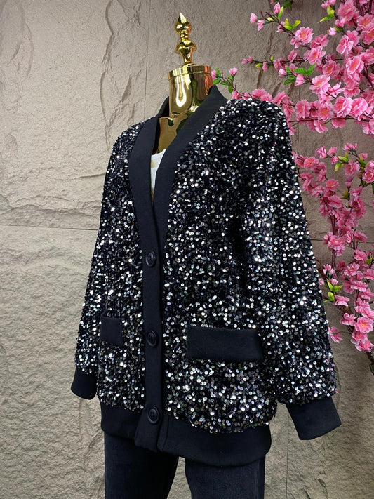 SWEATER CON LENTEJUELA TERCIOPELO NEGRO
