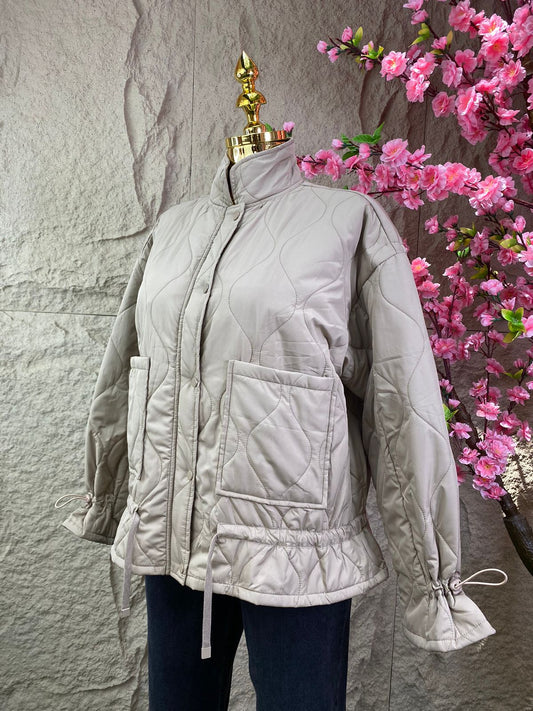 CHAMARRA ACOLCHONADA BEIGE CON AJUSTE EN MANGAS