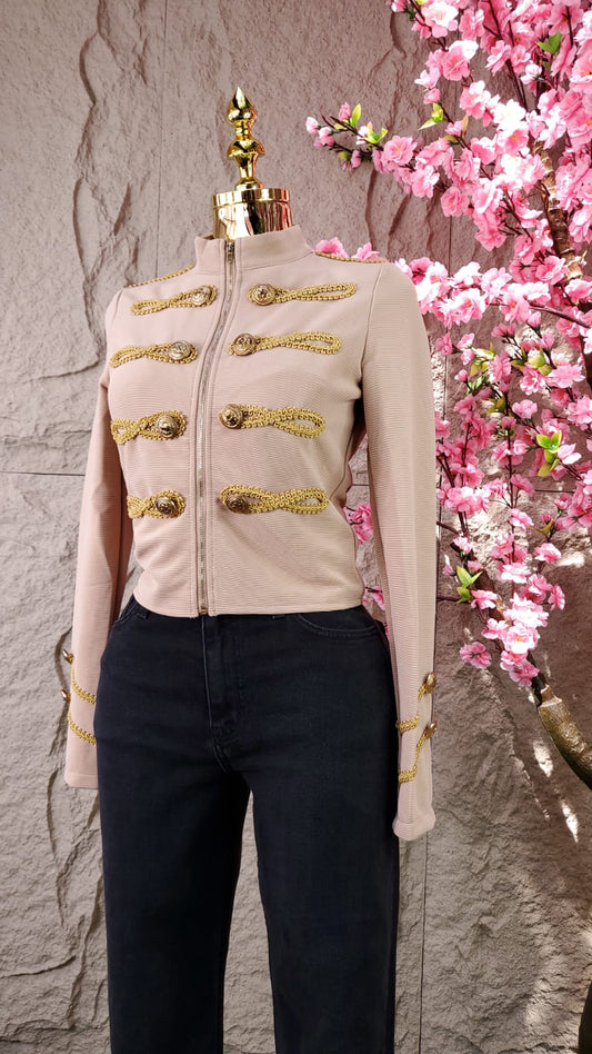 CHAMARRA CON FLORES DE LENTEJUELA ROSA