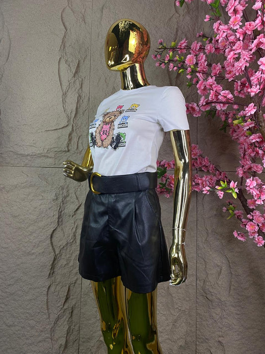 SHORT CON CINTURON EN VINIPIEL NEGRO