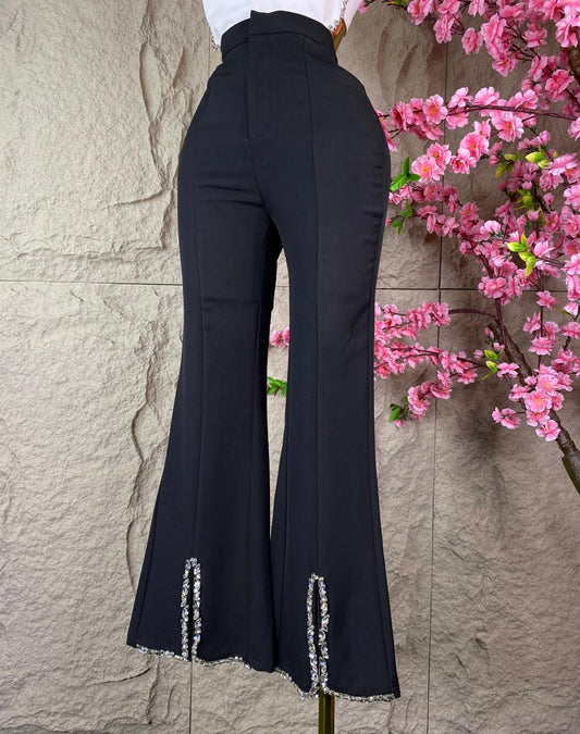 PANTALON CAMPANA DIAMANTES NEGRO