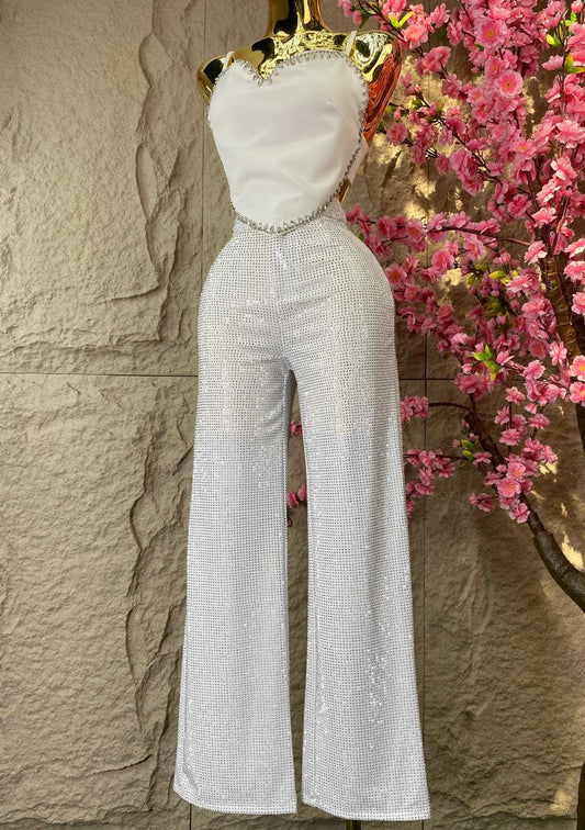 PANTALON CAMPANA BRILLOS BLANCO