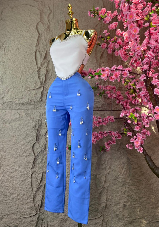 PANTALON CON PERLAS AZUL
