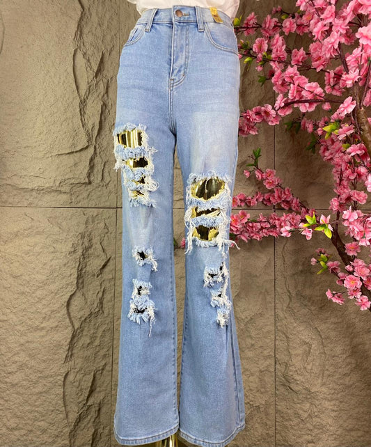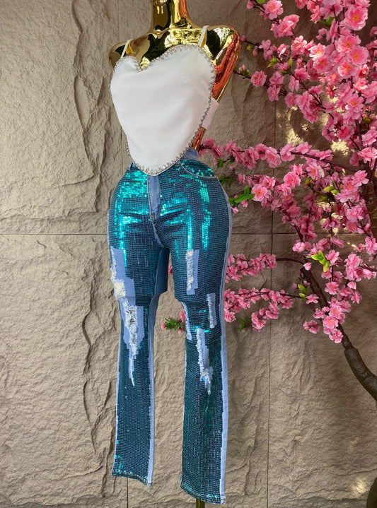 PANTALON CON LENTEJUELA MEZCLILLA AZUL