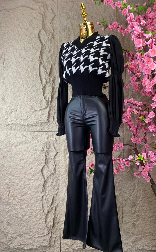 PANTALON CAMPANA BOTA VINIPIEL NEGRO