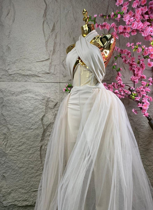 JUMPSUIT CORTO CON TUL Y FLORES BLANCO