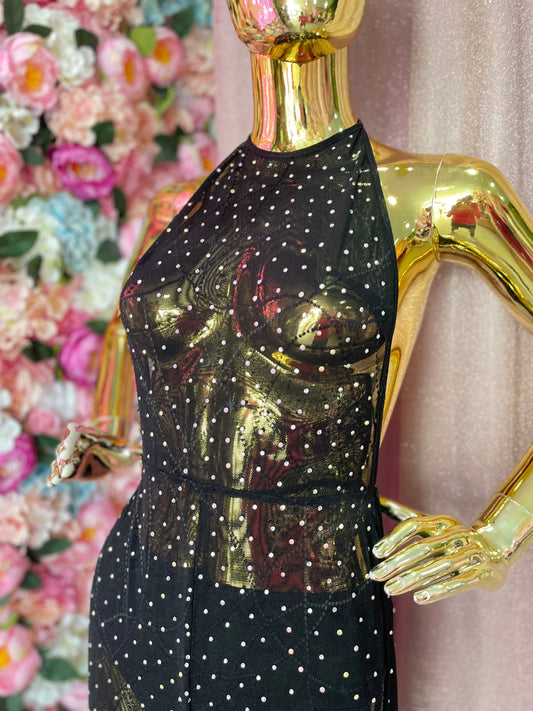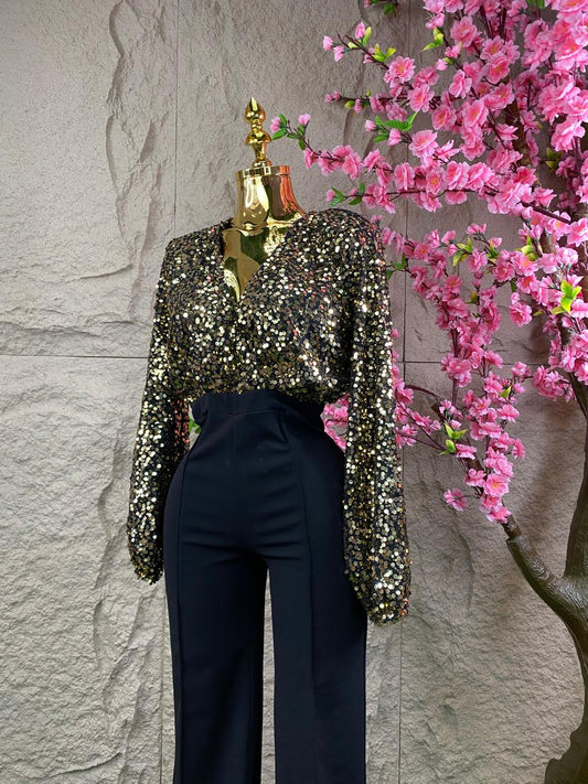 JUMPSUIT LARGO LENTEJUELA DORADA/NEGRO
