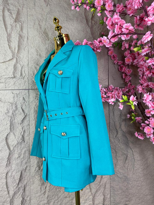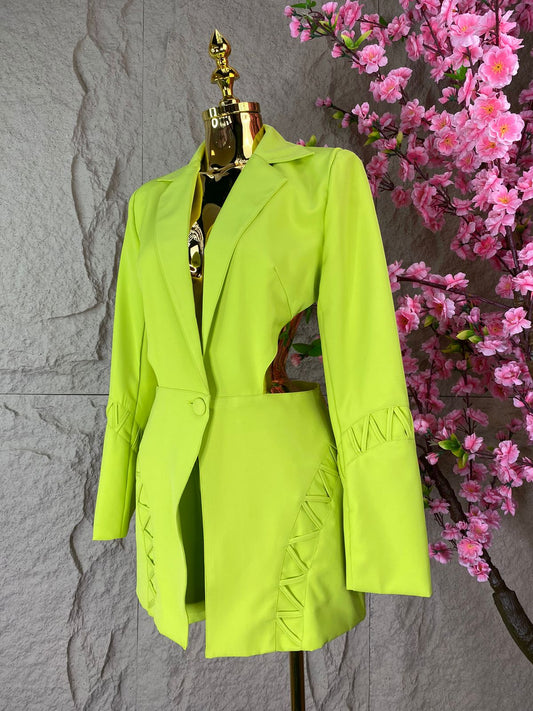 SET CORTO VERDE CINTURÓN Y BOTONES