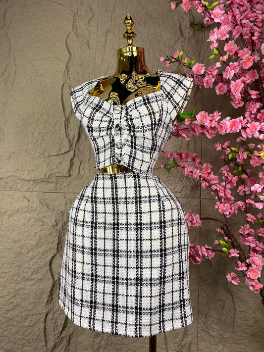CONJUNTO BLUSA/FALDA CUADROS BLANCO/NEGRO