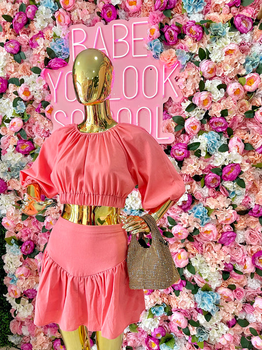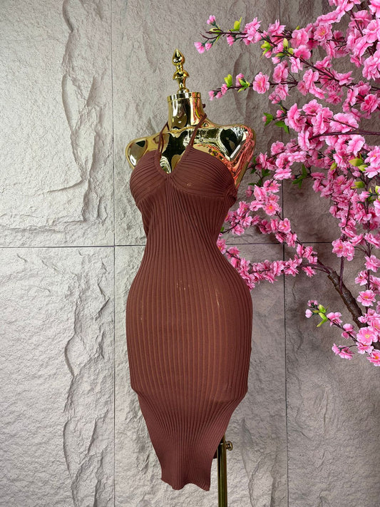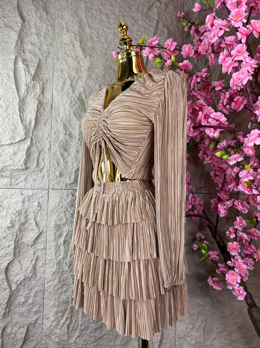CONJUNTO BLUSA/FALDA CORRUGADO CAFE