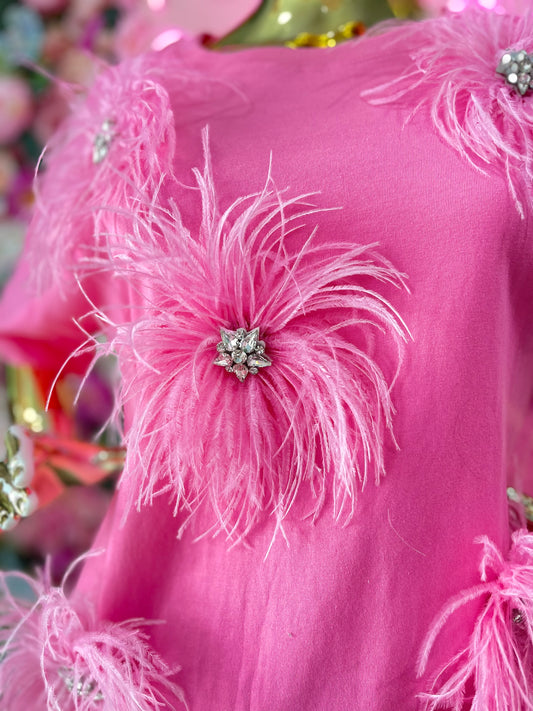 Sold outBLUSA CON PLUMAS Y BROQUELES ROSA