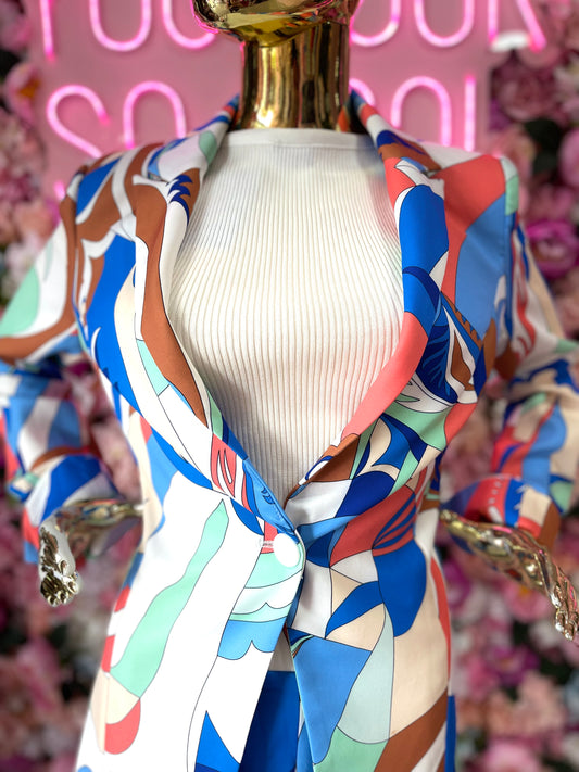 CONJUNTO PANTALON/SACO FLOREADO BEIGE