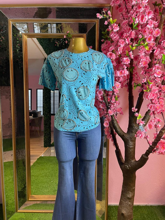 Sold outBLUSA BROQUELES EMOJI AZUL
