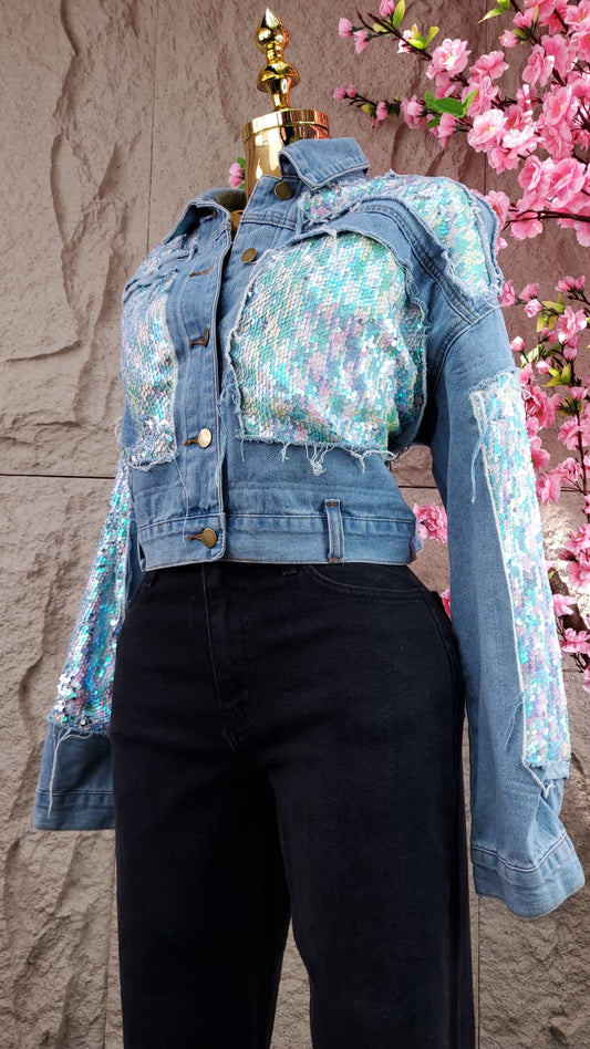 CHAMARRA DENIM CON LENTEJUELAS BICOLOR