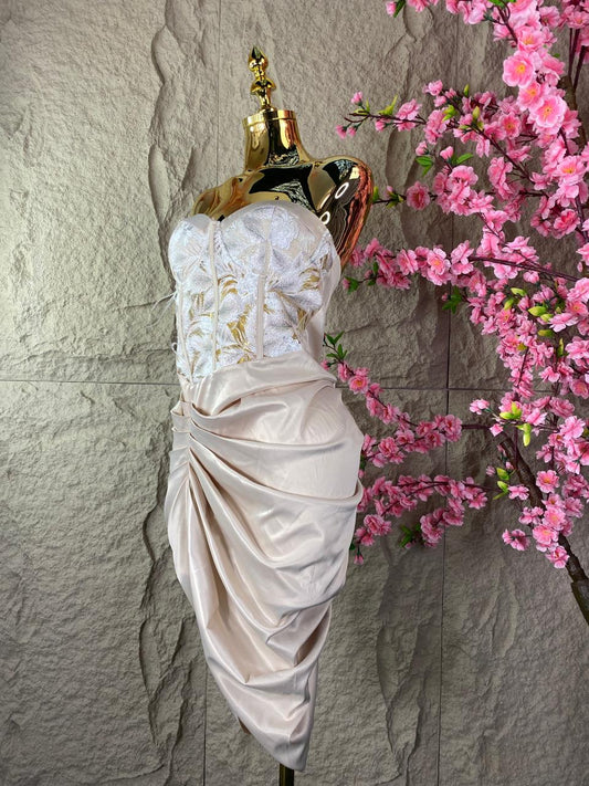 VESTIDO DRAPEADO CORSET BORDADO MARFIL
