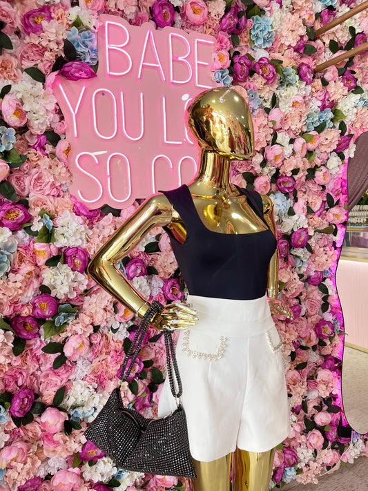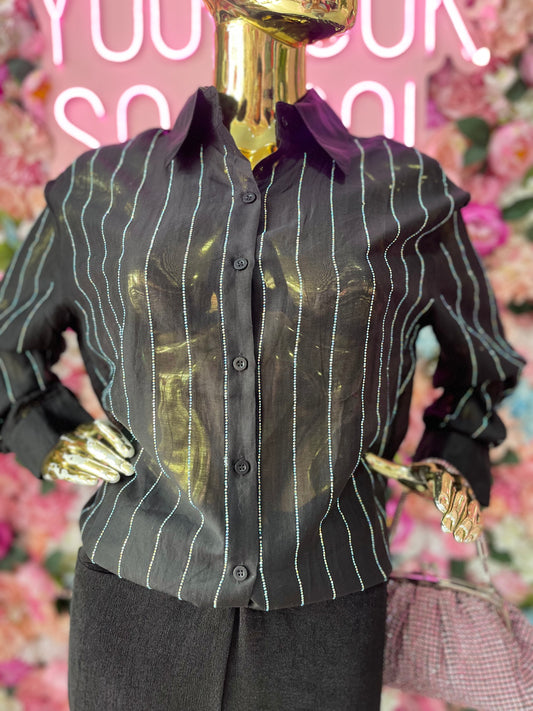 CONJUNTO SACO/FALDA CON ABERTURA AL FRENTE CON CRISTALES NEGRO