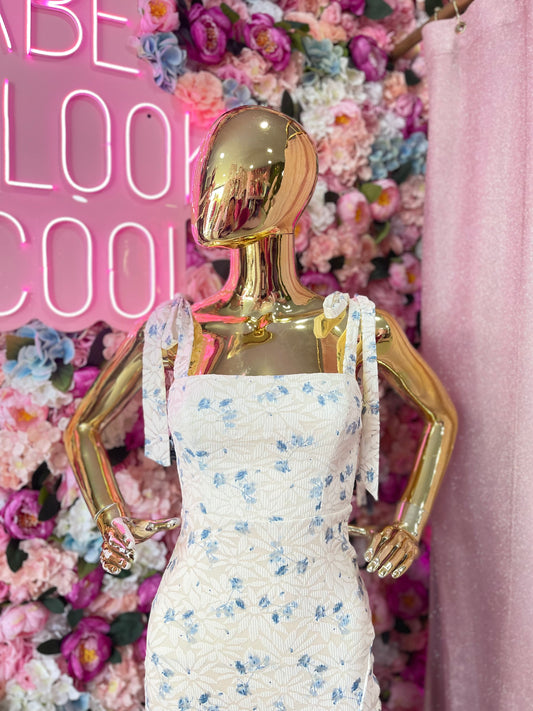 VESTIDO BLANCO FLORES BLANCAS/AZULES