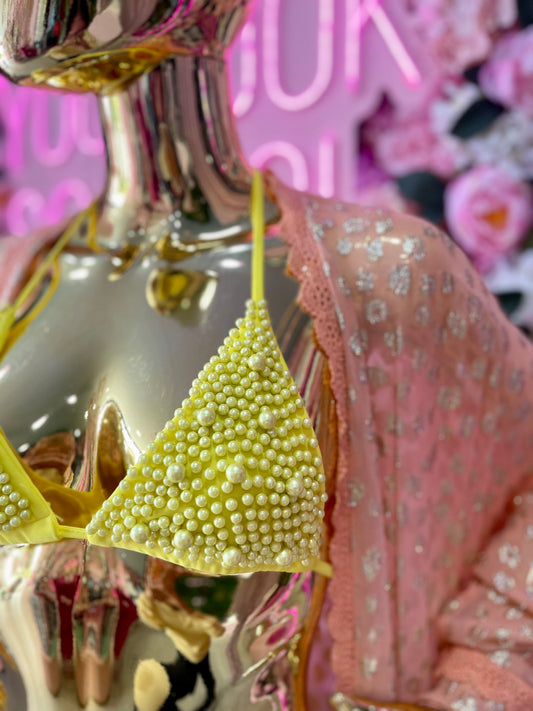 TRAJE DE BAÑO AMARILLO DE PERLAS