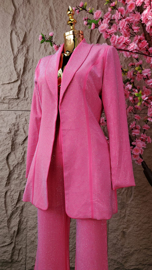 CONJUNTO PANT/TOP/SACO CON BRILLOS ROSA