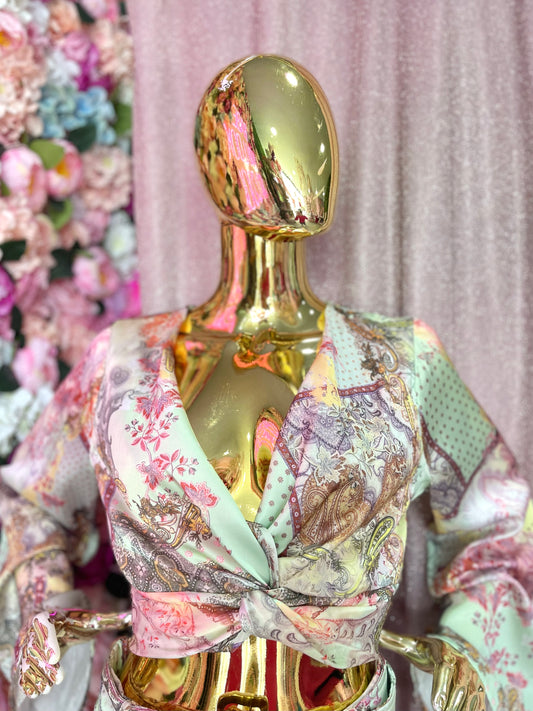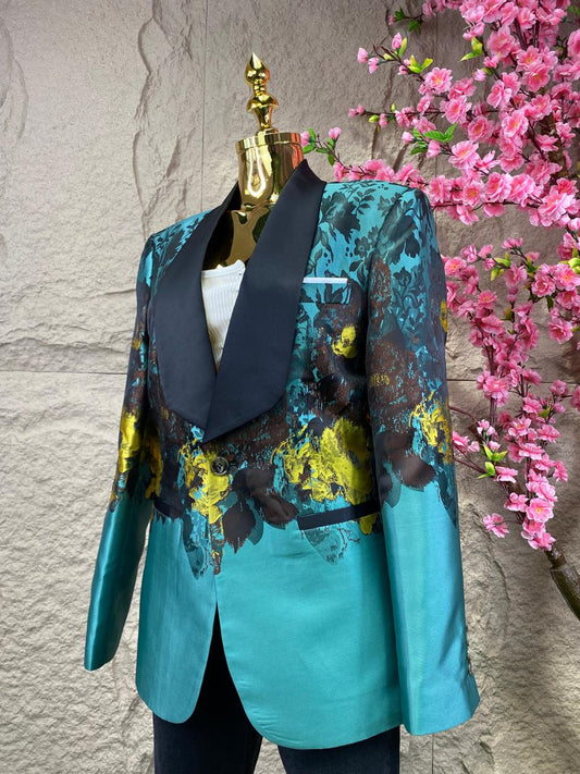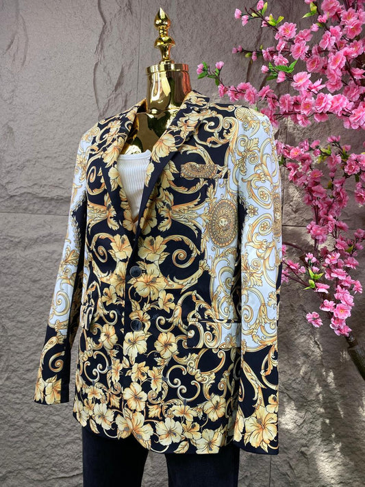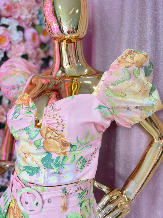 CONJUNTO PANTALON/SACO FLOREADO BEIGE