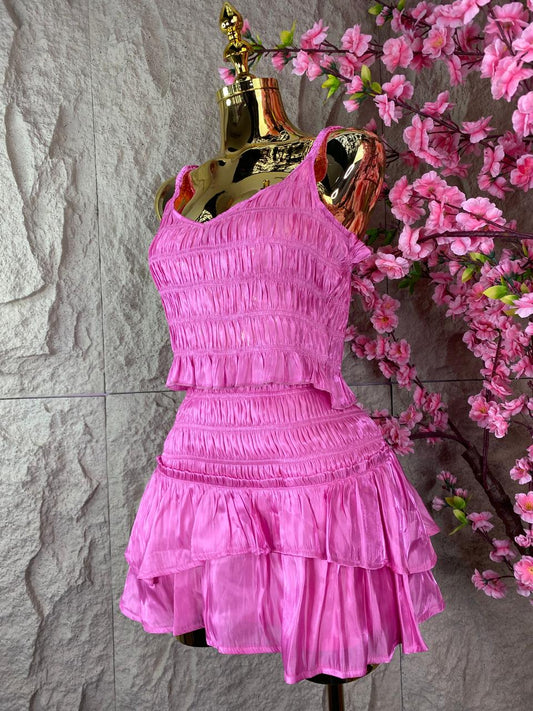 CONJUNTO CORRUGADO SATINADO CON TIRANTES ROSA