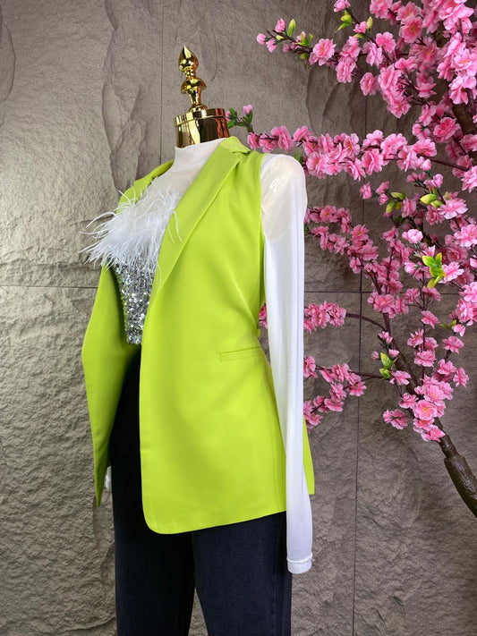 CHALECO DE VESTIR CON CINTURON ABIERTO VERDE