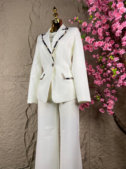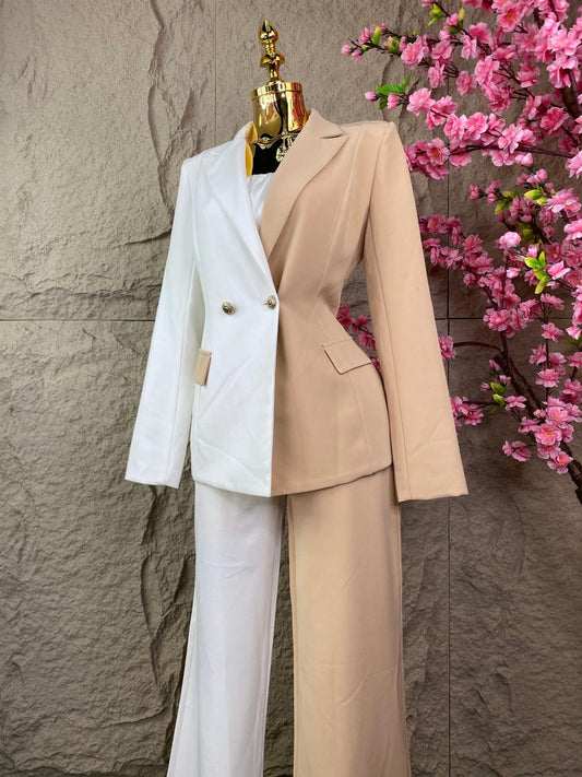 CONJUNTO SACO/PANTALON BEIGE/BLANCO