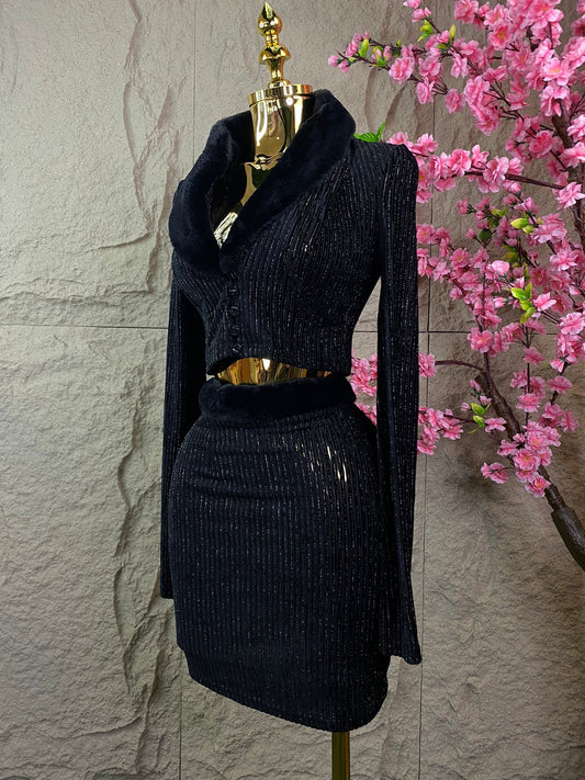 CONJUNTO SACO CUELLO PELUCHE/FALDA NEGRO