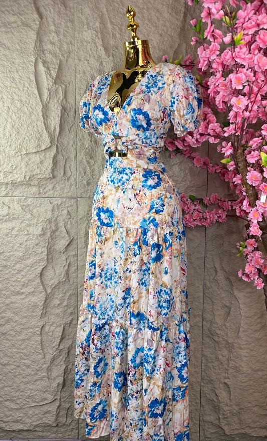 CONJUNTO FALDA LARGA /BLUSA ML FLOREADO