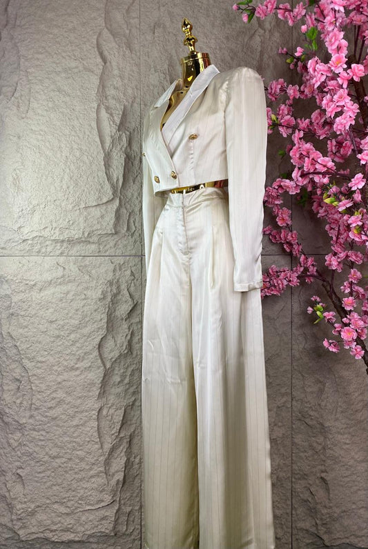 CONJUNTO SACO CORTO/PALAZZO BEIGE