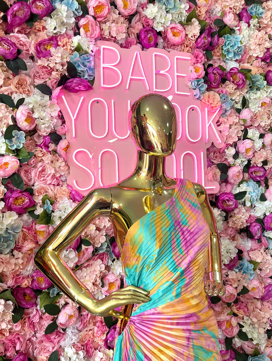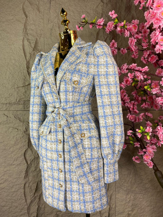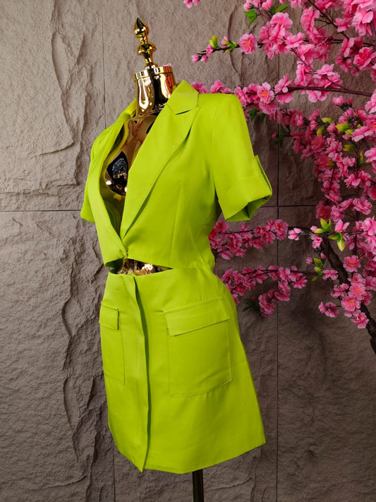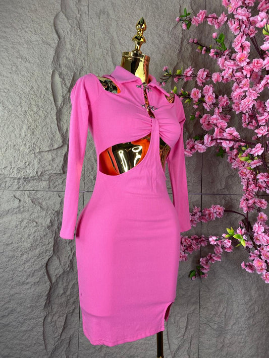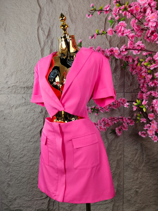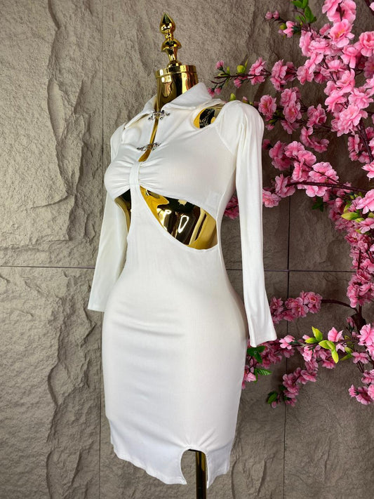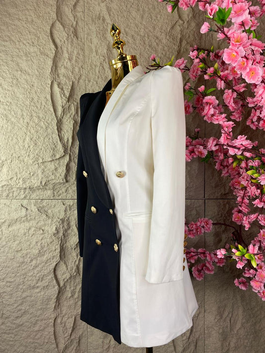 VESTIDO FORMAL CON BOTONES BICOLOR